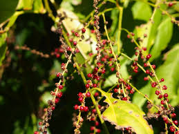 các chùm dạng bông, dài tới 20cm. Quả dạng quả mọng, khi chín màu đỏ, chứa 5-9