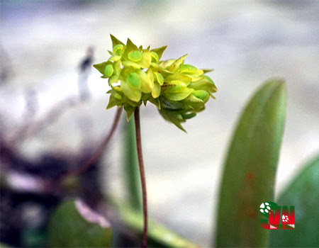 Mô tả: Phong lan nhỏ cù hình chóp nón, lá 1 chiếc. Cụm hoa dạng đầu chùy, nhỏ trên cuống chung mảnh, ngắn hơn lá. Hoa nhỏ 10 - 12 chiếc màu xanh lá hay màu nâu sậm, mọc sát vào nhau, nở vào mùa Xuân và mùa Hạ. Cánh đài dài gần bằng nhau. Cánh môi bầu dục